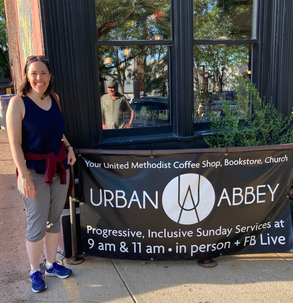If family and friends are near where I travel for work, I try to catch up with them. I wish I could have connected with even more people on this trip, but I did get my cousin and husband from Lincoln, NE to drive over to Omaha. We went to the Old Market neighborhood. When I came to Omaha on my days off, I often visited Soul Desires Bookstore. Now it is much more than a bookstore–it’s a United Methodist worship community (and more) called Urban Abbey.